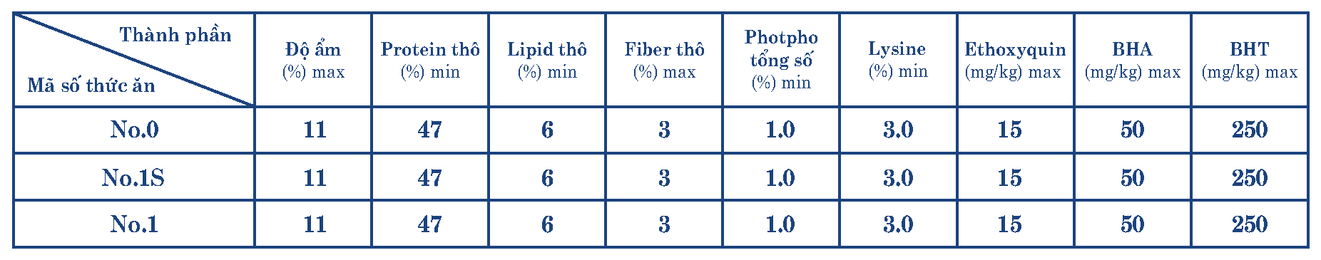 – Khi muốn thay đổi cỡ thức ăn thì trộn chung cỡ thức ăn cũ và mới với tỷ lệ 50% trong 3 – 4 ngày.